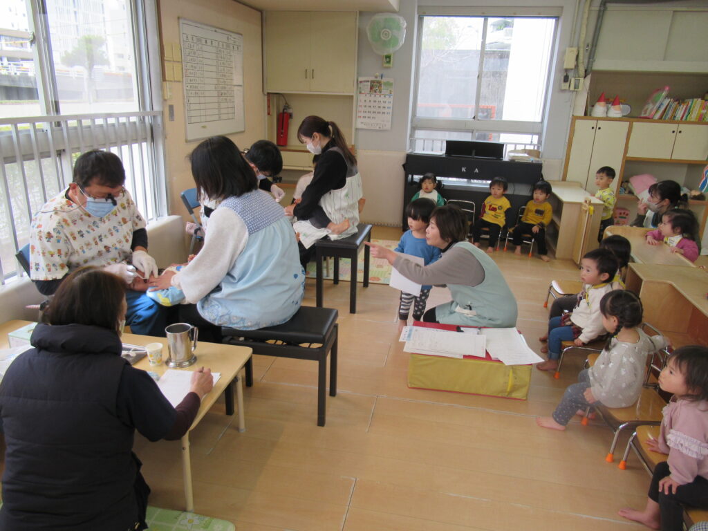 今年度、2回目の歯科検診がありました。順番を待ってドキドキしている子どもたち💓