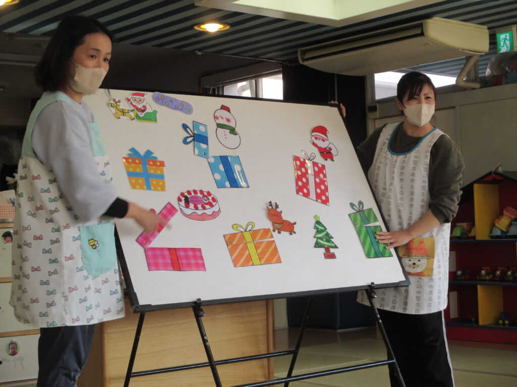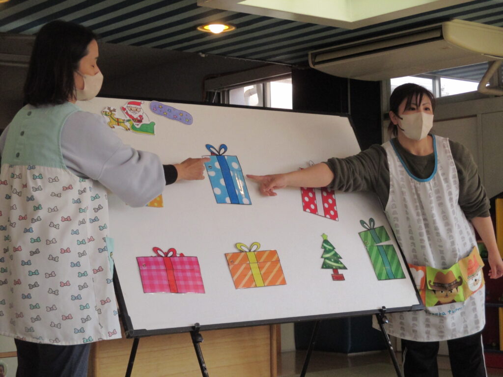 「なんだろう?サンタさんかなあ?」とお友だちと相談したり・・・☺️