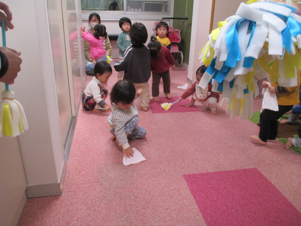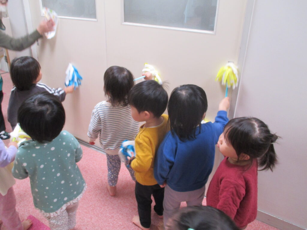 ぞうきんやMyはたきを持って、つきぐみの子どもたちがお掃除をしてくれました☆
