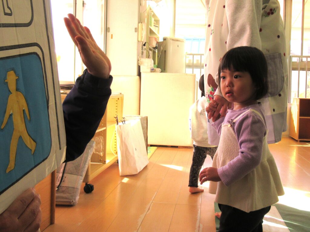 右みて、左みて、もう一度右をみてー 手を挙げて渡ります!