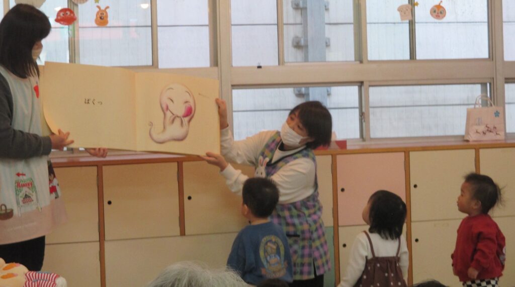いつも見ている大好きな絵本が大きくなっていつも以上に興味津々!