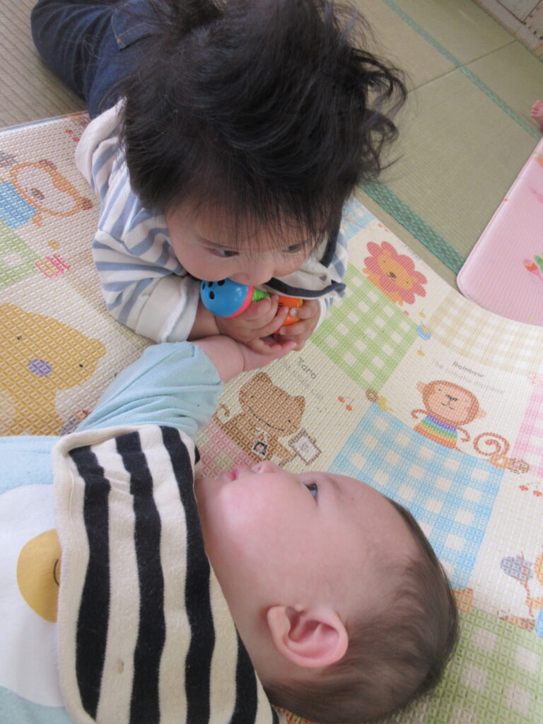 ”なにしてるの?”と手を伸ばしてお友だちにも興味津々!!