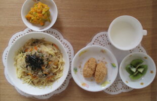 青菜としらすの和風スパゲティ、南瓜サラダ