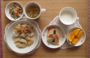 誕生会ランチ(くまさん:炊き込みご飯、肉団子、清汁)