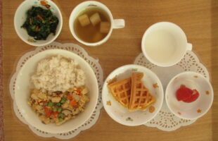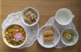 行事食や誕生会ランチは、子どもたちが喜んでくれるようなメニューを取り入れ、盛り付けを工夫しています。