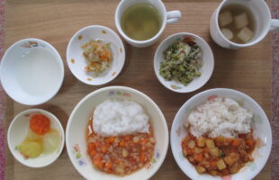 行事食や誕生会ランチは、子どもたちが喜んでくれるようなメニューを取り入れ、盛り付けを工夫しています。